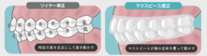 カスタマイズされた透明なマウスピース(アライナー)が歯の全体を覆い、毎日22時間以上装着、約1~2週間ごとに交換することで、段階的にきれいな歯並びへと改善していく方法です。